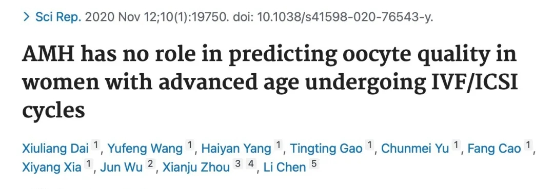 对于上个研究没有明确的AMH低对高龄女性怀孕到底有多大的影响,我国学者在《NATURE》子刊上发表了一个具有针对性的研究,可以作为上面研究的姊妹篇。