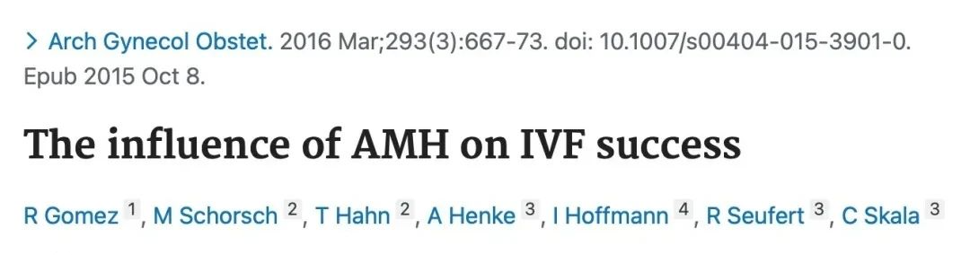 研究样本数为1287例,号称该类研究史上最大样本之一,证明其权威性。这个研究结果表明,在年轻患者中(小于36岁),AMH水平无法预测怀孕结果,即使年轻女性AMH水平低到测不到,她的怀孕机会依然是可以接受的。对于超过36岁的女性,这个研究认为,AMH可以作为预测怀孕的因素,但文章也并没有说这个因素有唯一性,也就是仅仅只是一个预测怀孕因素之一。